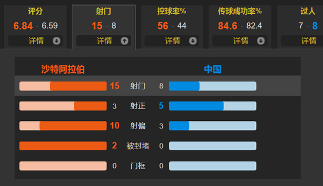 全场比赛,国足的控球率为44%,一共有8次射门,其中5次射正;沙特一共有15次射门,其中3次射正。国足有击败沙特的实力,但前提是归化球员全上,李铁绝对不是国足主帅的“良配”。再看赛后评分,替补出场的三大归化前锋(阿兰、洛国富、艾克森)都获得了7.2的高分。