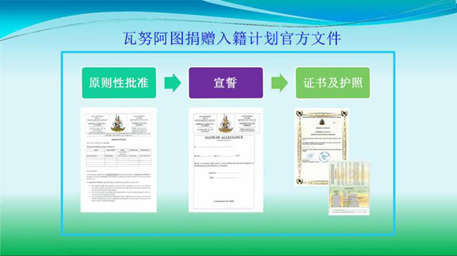2016年12月,瓦努阿图依据《国籍法第112章》第13D条的规定,正式颁布了《2016年第220号国籍条例(捐献计划)法令》,也称为瓦努阿图公民发展支持计划 (DSP),允许年满18周岁的申请人通过经济贡献获取公民身份及护照,快至3个月即可获批,无语言学历要求,无需解释资金来源,无居住要求。